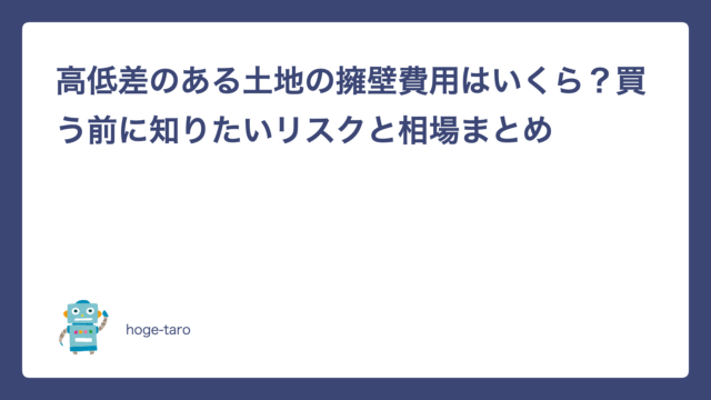 住まい 高低差のある土地の擁壁費用はいくら?買う前に知りたいリスクと相場まとめ 2026年2月26日 hoge-taro 「相場より500万円安い!ちょっと待って、なんで?」 不動産探しをしていると、こういう物件に出会うことがあります。立地も広さも条件ぴ …