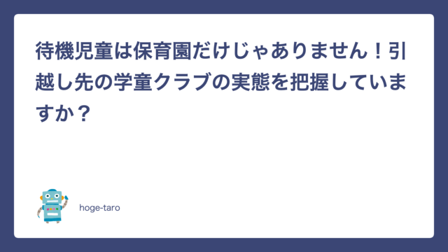住まい 待機児童は保育園だけじゃありません!引越し先の学童クラブの実態を把握していますか? 2026年2月26日 hoge-taro #gakuranking-root { font-family: 'Hiragino Kaku Gothic ProN', …