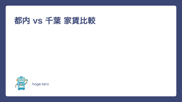 住まい 都内 vs 千葉 家賃比較 2026年2月28日 hoge-taro 都内と千葉の家賃、実際どのくらい差がある?エリア別・間取り別のリアルな家賃データを比較してみました。毎月の差額に驚くかも。 /* ================ …