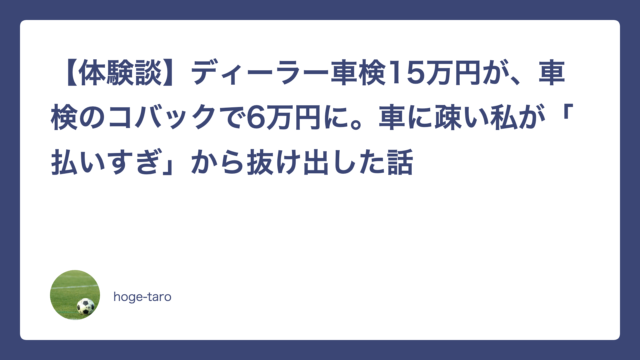 ライフハック 【体験談】ディーラー車検15万円が、車検のコバックで6万円に。車に疎い私が「払いすぎ」から抜け出した話 2026年2月23日 hoge-taro ※この記事は「住まい(家賃・住宅費)の負担が重い共働き子育て世帯が、生活費を少しでも軽くする」文脈のライフハックとして書いています。 …