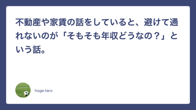 いろんな数字 不動産や家賃の話をしていると、避けて通れないのが「そもそも年収どうなの?」という話。 2026年2月25日 hoge-taro 「物価が上がってる」「賃上げが進んでる」ってニュースはよく聞くけど、実際のところ、自分の生活は楽になってるの? 正直、私自身も「なん …