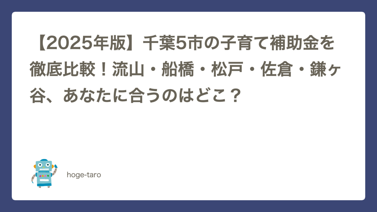 【2025年版】千葉5市の子育て補助金を徹底比較!流山・船橋・松戸・佐倉・鎌ヶ谷、あなたに合うのはどこ?