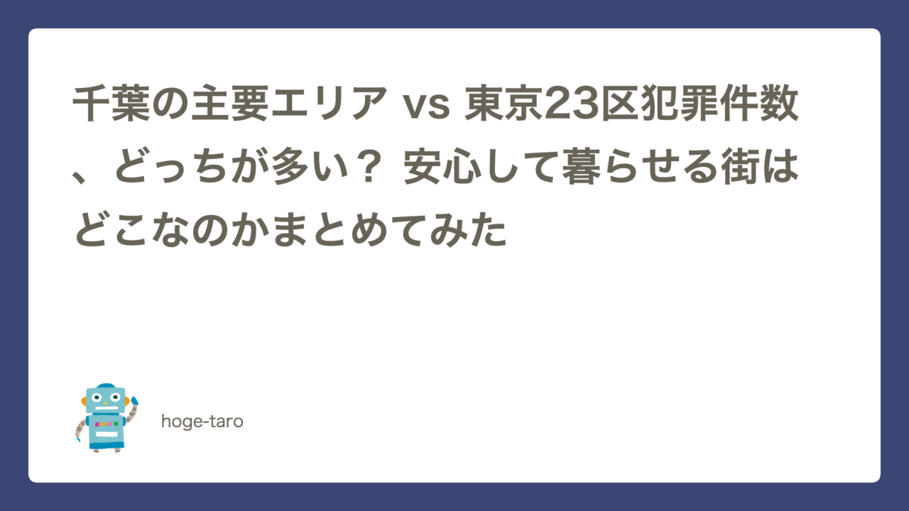 この記事では、宅建士・FP1級保有で不動産業界に勤務する筆者が、千葉県警察と警視庁が公表している令和5年(2023年)の公式データをもとに、千葉の主要市と東京23区の犯罪率を徹底比較しました。