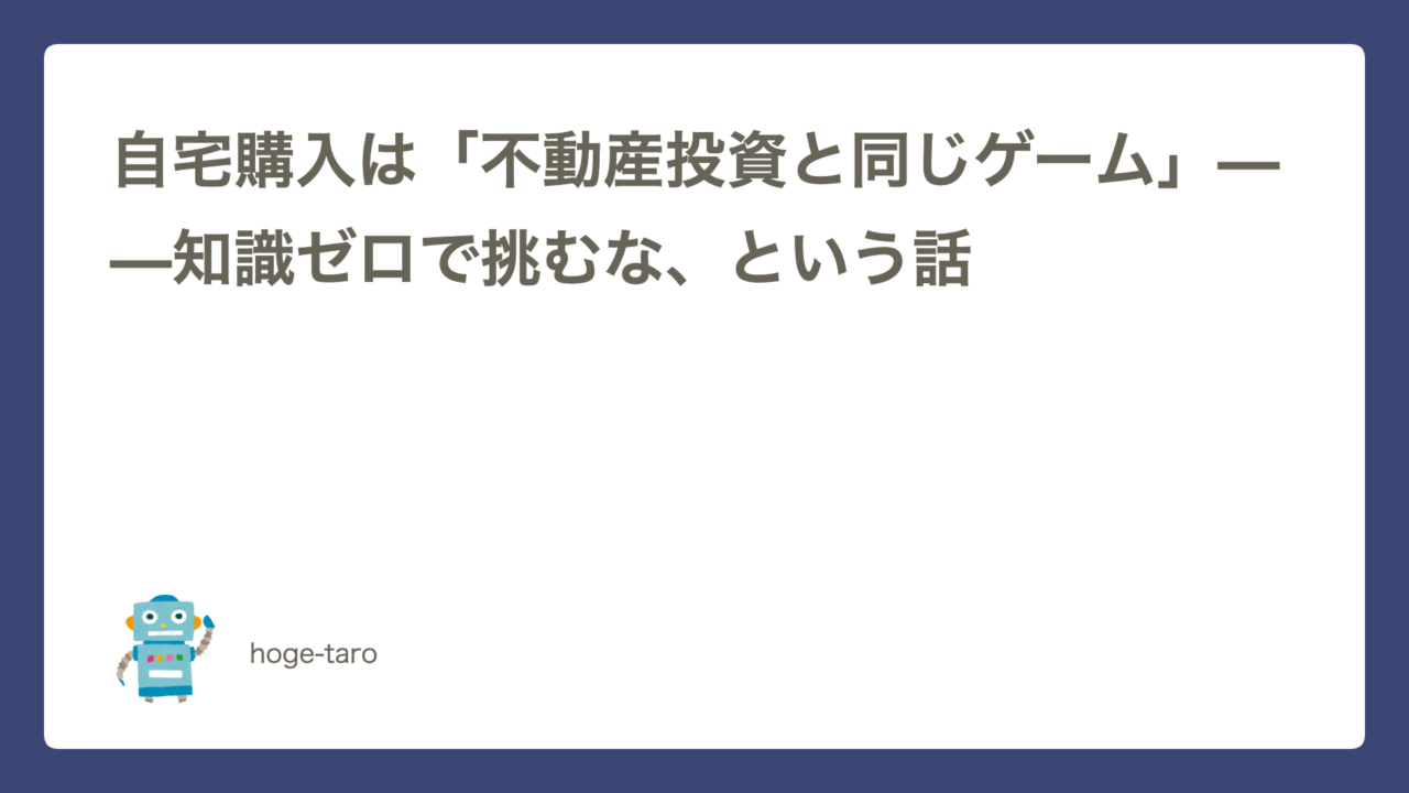 自宅購入は「不動産投資と同じゲーム」——知識ゼロで挑むな、という話