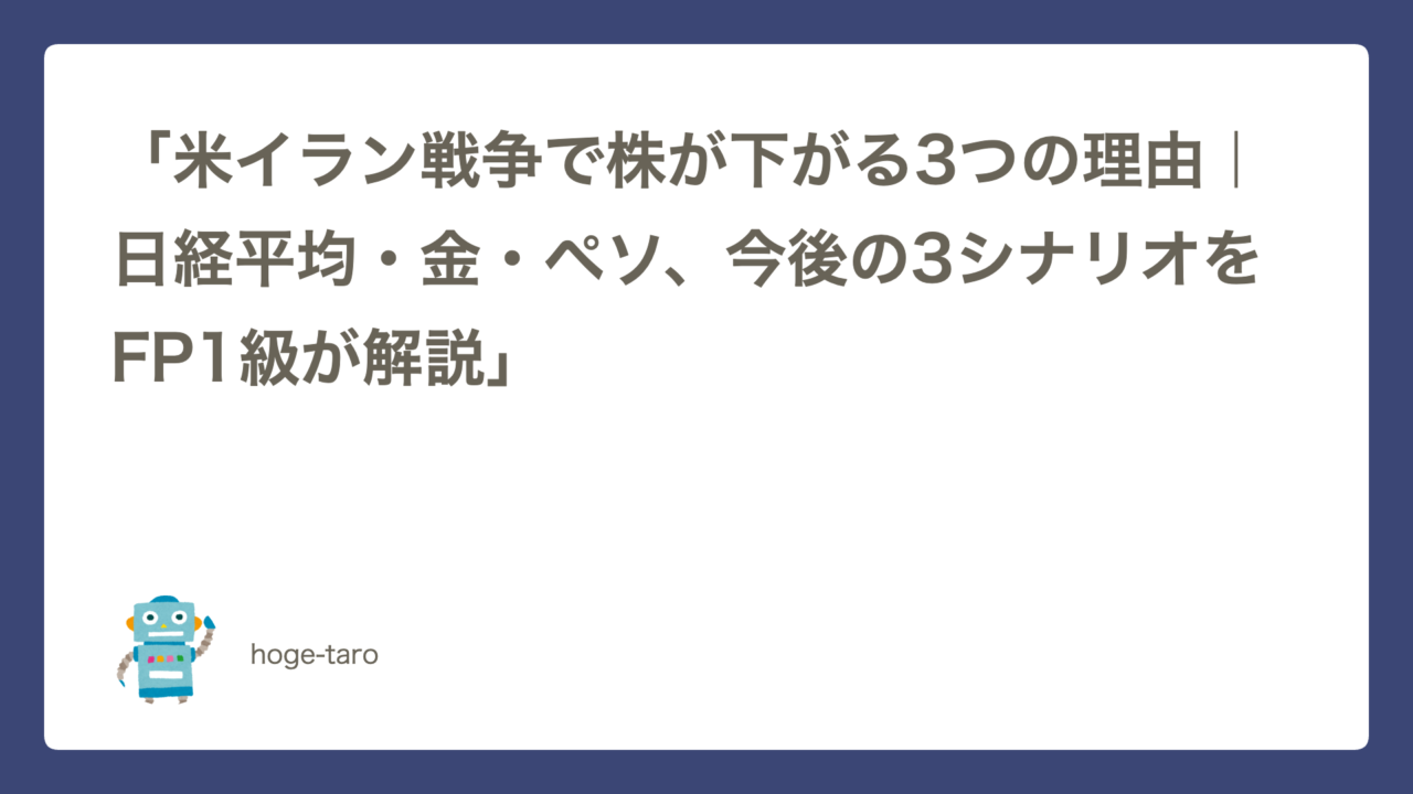 「米イラン戦争で株が下がる3つの理由|日経平均・金・ペソ、今後の3シナリオをFP1級が解説」