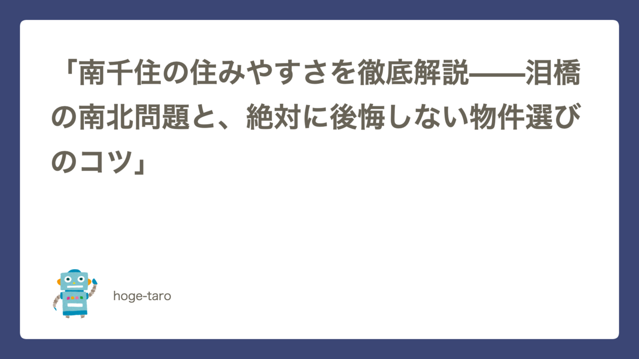 この記事では、地元民としてのリアルな体験と、不動産・歴史の両面から南千住を徹底解説します。「駅から近い・安い」という甘い言葉に踊らされる前に、ぜひ読んでみてください。住所を確認するだけで、あなたは失敗を避けられます。