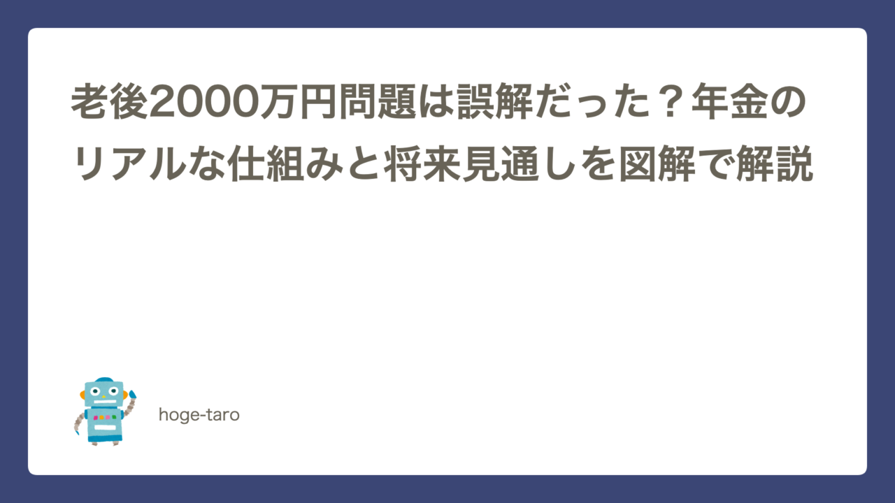 「2000万円問題」は、特定の前時代的なモデルケースの話であり、共働き世帯のほとんどには直接当てはまらない。でも「年金だけで十分だから資産形成は不要」という話でもない。インフレや医療費、長寿リスクへの備えとして、NISAやiDeCoを活用した自助努力は必要です。