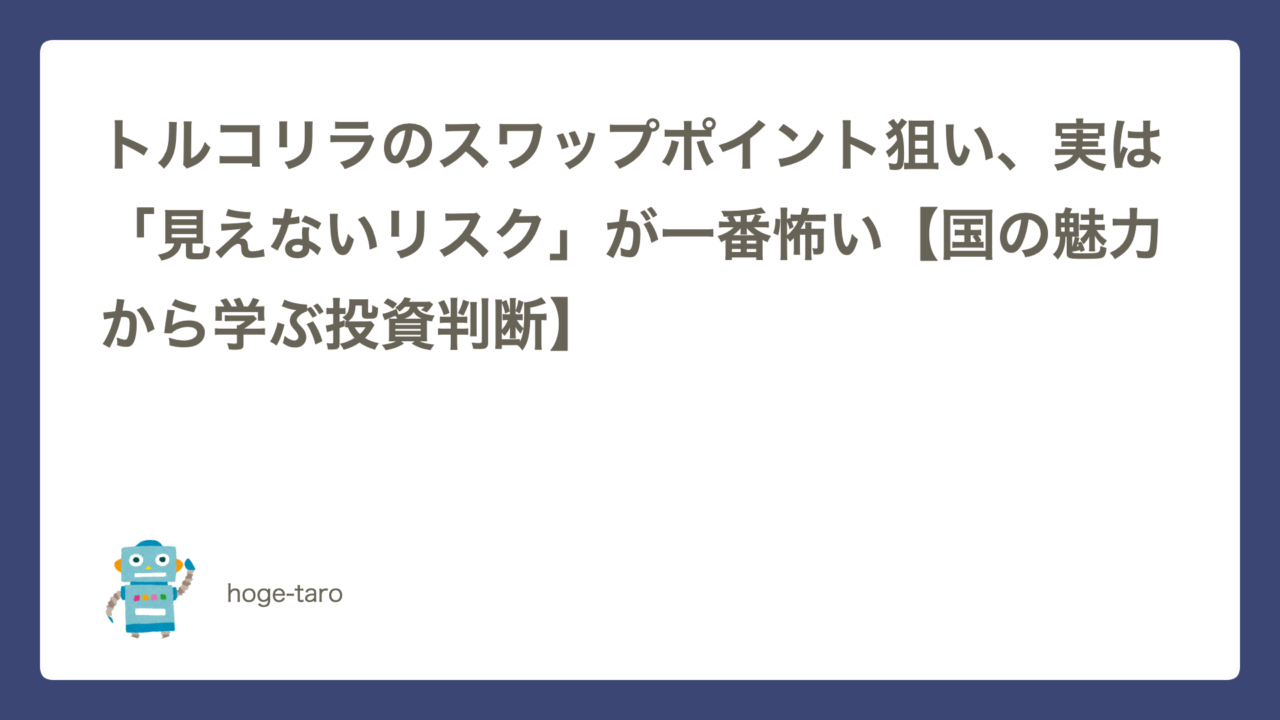 結論から言います。トルコリラ投資は「スワップポイントだけ見ていると、気づかないうちにやられる」通貨です。 でも、リスクを正しく理解した上でポジションを持つなら、それはれっきとした投資戦略になります。