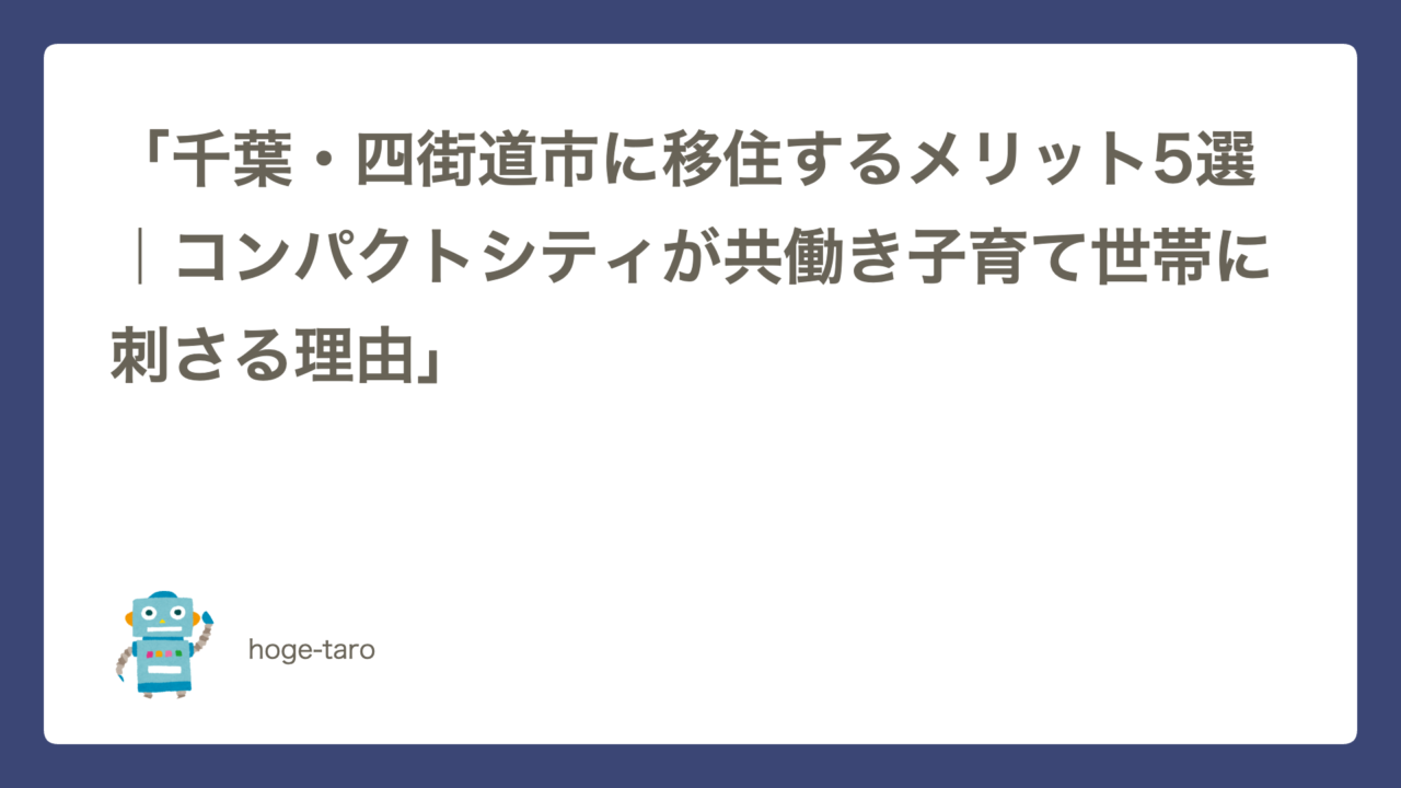 千葉への移住を検討しているなら、ぜひ一度、実際に四街道駅の北口に降り立ってみてください。「あ、ここ思ったより全然いいじゃん」という感覚、絶対あると思います。